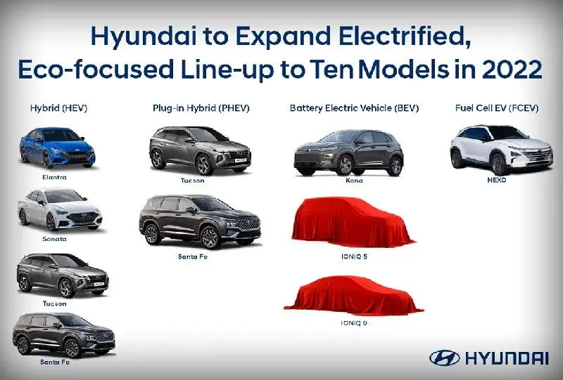 在更早的2019年11月,现代汽车曾宣布将于2022年在美国推出13款电动车型,包括6款轿车和7款SUV。不过从今年11月11日现代汽车官网宣布的消息来看,这一计划进行了些许调整,2022年底前现代汽车会在美国市场投放10款电动车型,涵盖纯电动(BEV)、插电式混动(PHEV)、油电混动(HEV)以及氢燃料电池(FCV)。而针对中国市场,现代汽车则表示,2021年将计划在中国市场投放9款新车,其中包括全新索纳塔和纯电动汽车IONO 5等。