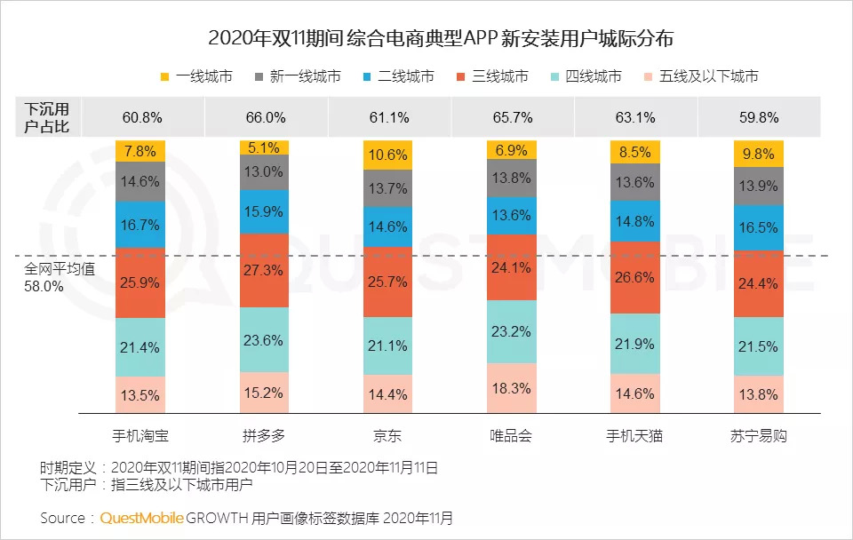 1.1 消费市场进一步向下沉城市延伸,双11继续加速各大电商对下沉用户的挖掘