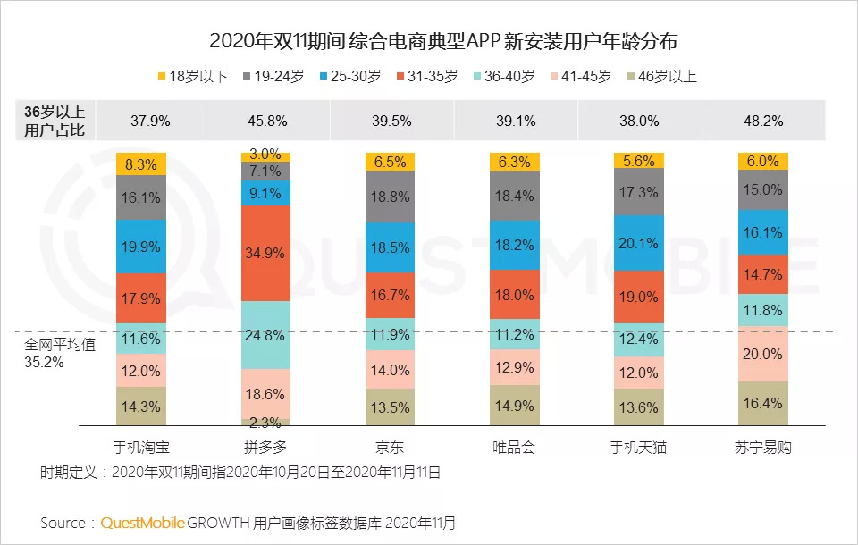 1.2 双11也在大力刺激中老年群体消费需求,用户面在进一步扩大