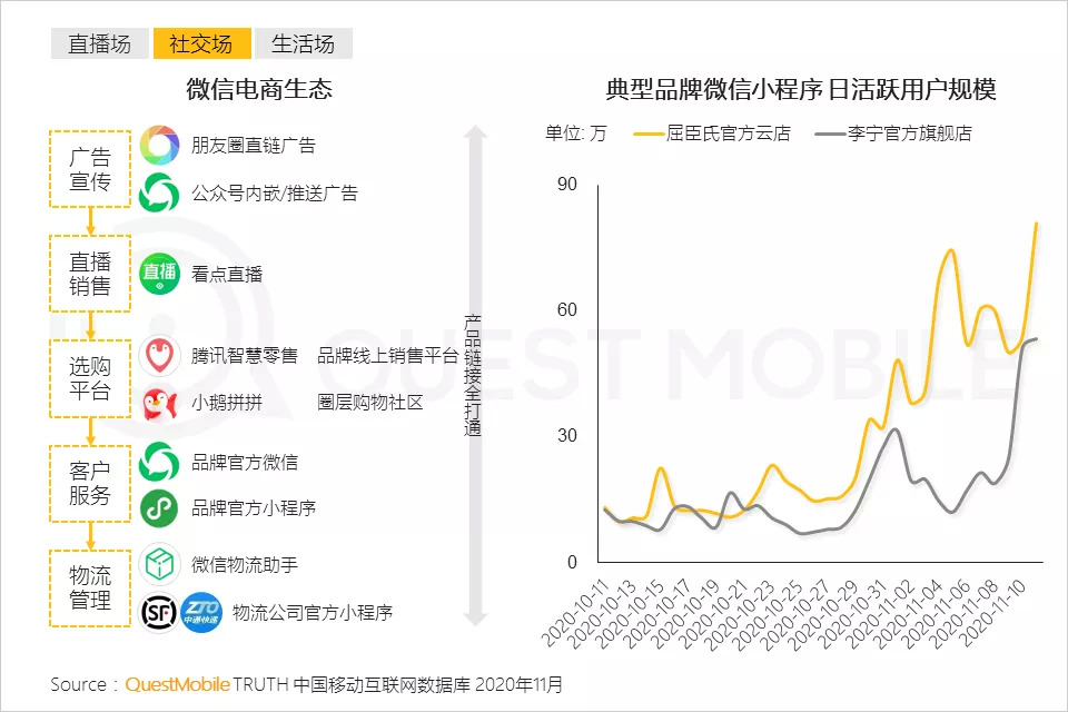 3、场:新老玩家持续发力扩建三大营销场,“直播场”、“社交场”、“生活场”