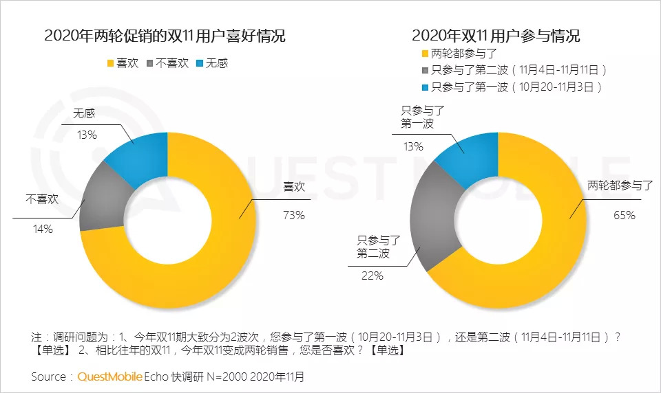 4、用户对今年双11的两轮促销活动接受度较高,多数用户两波均有参与
