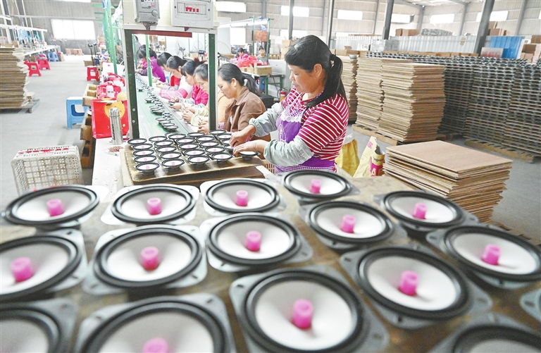 留车村电子厂让村民及贫困户实现了在家门口就业。 江西日报记者李劼摄