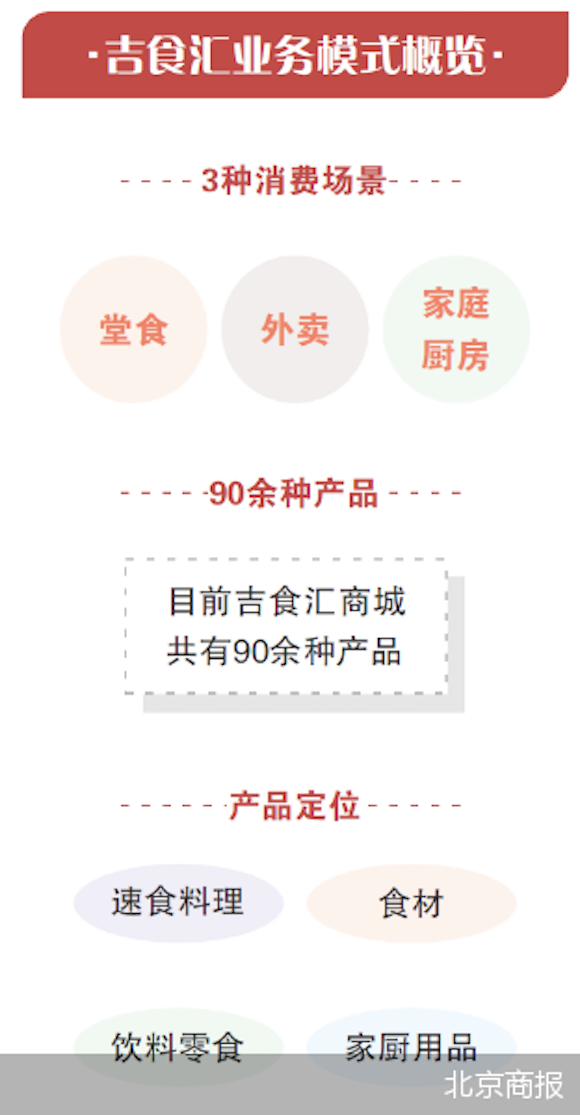 吉食汇品牌负责人对北京商报记者表示,除了消费场景多样化之外,吉食汇线上及线下体验区所涵盖的产品种类较广,总计有90余种产品,主要聚焦在冷冻速食、粮油、调料、休闲食品等品类。“通过店面零售、社区零售网点、电商平台等线上线下相结合的多渠道,吉食汇主要解决消费者食材采买问题,并以速食料理、食材、饮料零食、家厨用品为主。”