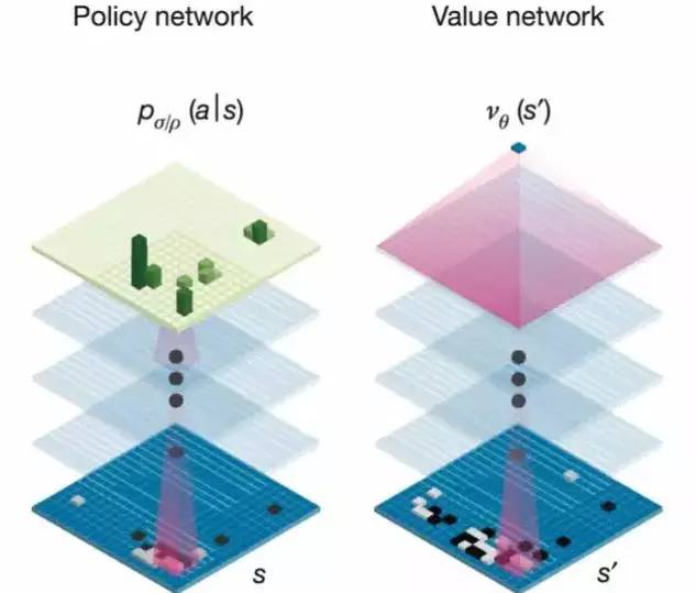 AlphaGo使用两个不同的神经网络“大脑”,通过两者合作得出移棋决定。