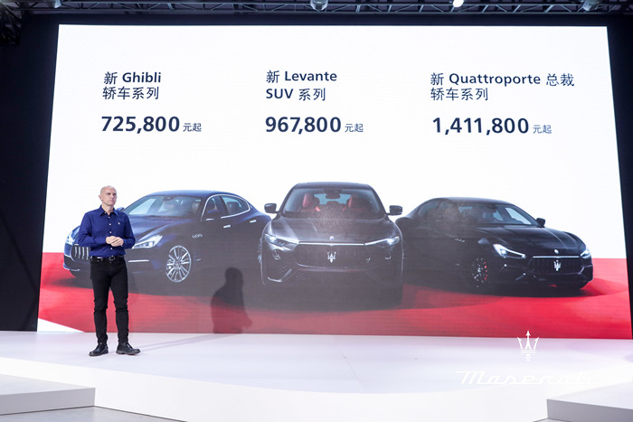 其中新Ghibli起步售价72.58万元,新Levante起步售价96.78万元,新Quattroporte总裁起步售价141.18万元。