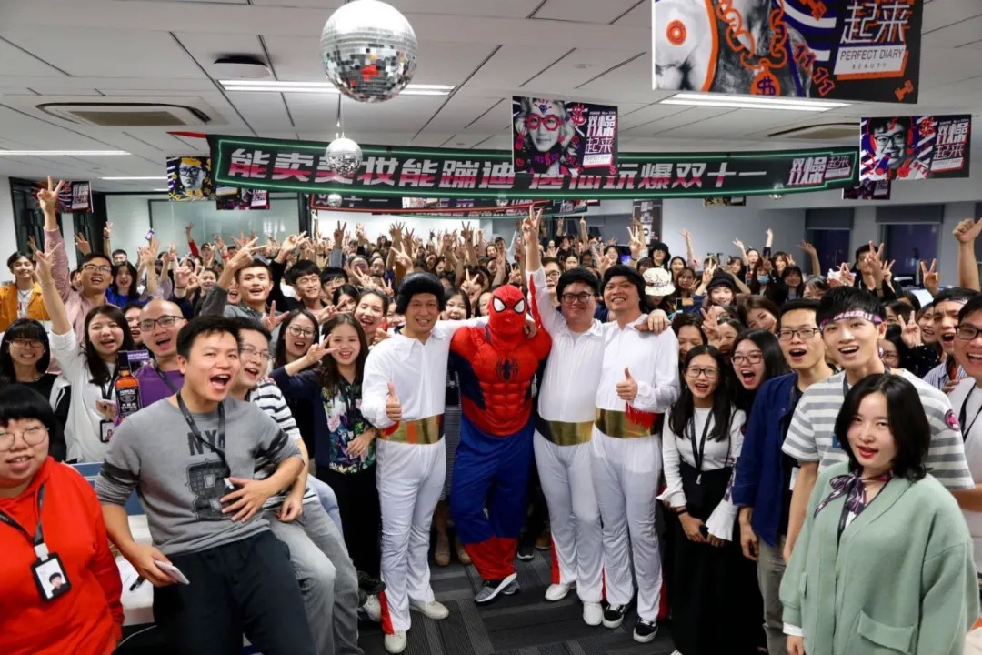 2018年的双十一,完美日记成为美妆届黑马破圈而出,那一年王天石也作为投资人参与了这场营销。他依然印象深刻,“我是当时唯一一位陪在他们身边的投资者。2017年的双十一做的一般,2018年觉得好像掌握了一些技巧,当时数据出来,很快销售额就破亿,大家都很兴奋。”狂欢之后,王天石和黄锦峰下楼吃了一碗肠粉,回去接着奋战。