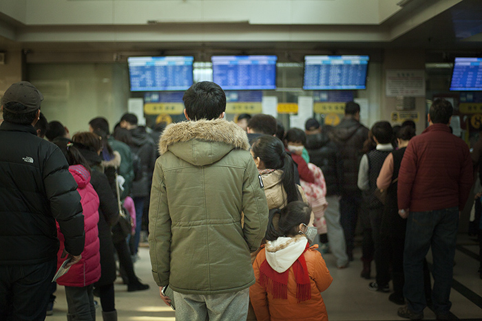 医院早晨6点开始放号,一位父亲早晨4点就起床了,两个多小时后,当他抱着孩子匆忙走进儿研所的门诊大厅时,大厅里已经人头攒动,开放的几个挂号窗口前,每条等待挂号的队伍已排出数十米长。
