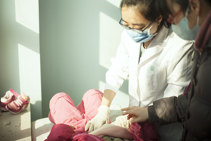彭博的病人大多是恹恹倚在父母怀里的孩童。在冬季病毒的侵袭下,发烧、咳嗽、拉肚子,是孩子们最常见的病症。