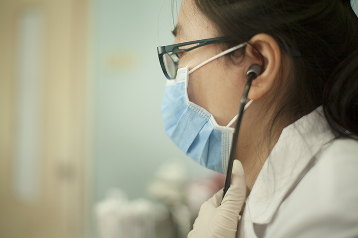 迅速更衣后,她走进诊室。这间诊室供两位医生看诊,十平米的范围是她的工作区。