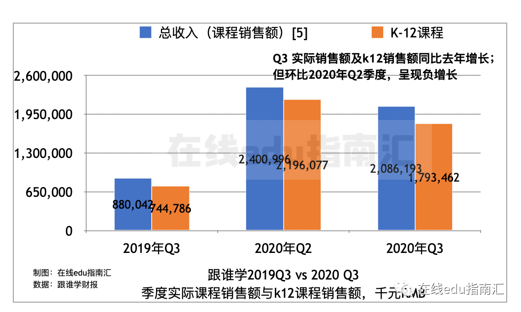 k12网课实际销售额是17.93亿元,环比上一季度21.96亿元,下降比例达18%。