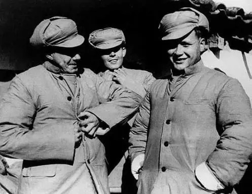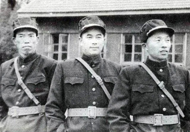 身穿朝鲜人民军军服的38军首长(左起):军长梁兴初,副军长江拥辉,政委刘西元