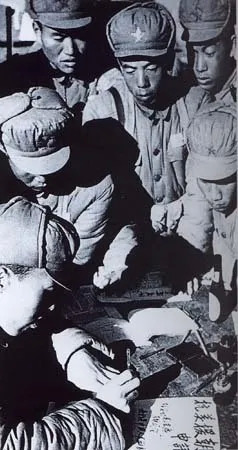 1950年冬,穿50式冬服的解放军指战员纷纷要求加入志愿军部队,参加抗美援朝