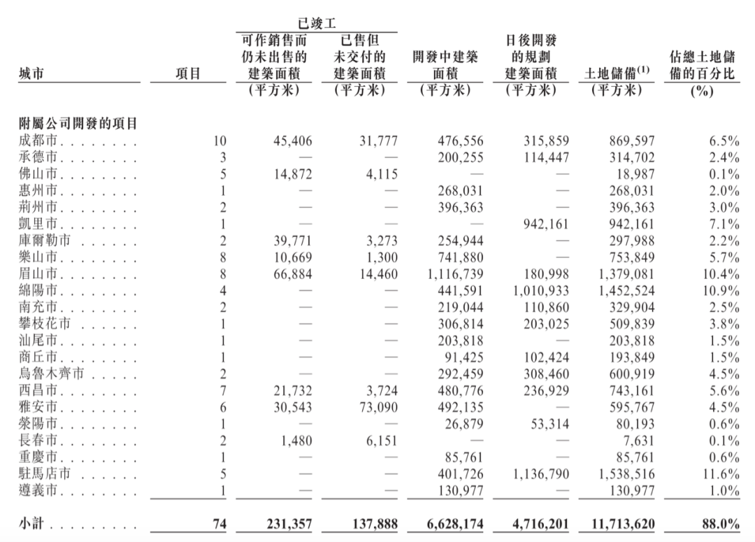 招股书显示,截至2020年7月底,领地在全国共有房地产项目104个,但其中的68个位于四川省内。且在全国市场的扩张上,也仍主要为三四线城市。