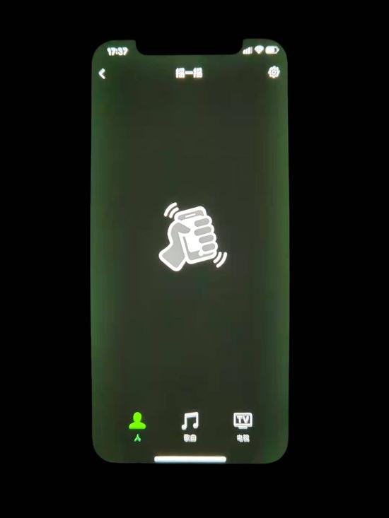 虽然这两年的安卓产品也出现过不少绿屏现象,但几乎没有一款产品会像iPhone 12这样大规模绿屏,其实这与iOS的机制也有部分关系。按照网友的测试条件,我们先要将iPhone 12的屏幕亮度拉高,然后进入到微信的摇一摇界面观察,在深灰色的背景下,iPhone 12就很容易出现绿屏的情况。