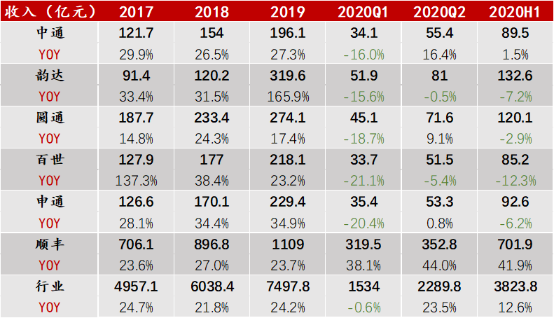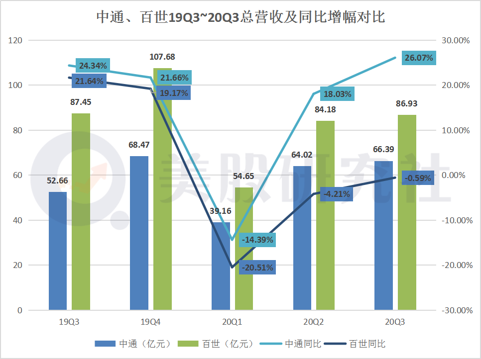 经济复苏致快递巨头营收好转,但中通与百世同比增速差距拉大