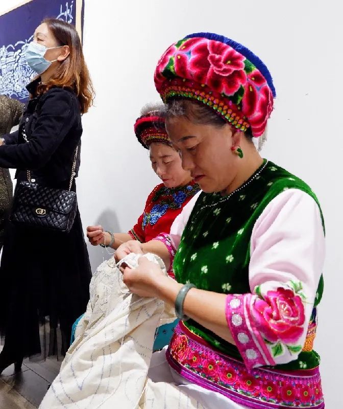 同时,一场“技艺彩云南·相约黄浦江”非遗艺术展在和美术馆拉开序幕。这里不仅能欣赏到六位云南非遗传承人的作品,了解扎染、剪纸的制作过程,还有用非遗技艺制作的文创产品售卖。