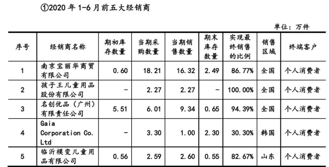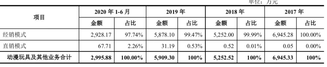 动漫玩具及其他产品2020年1-6月前五大经销商