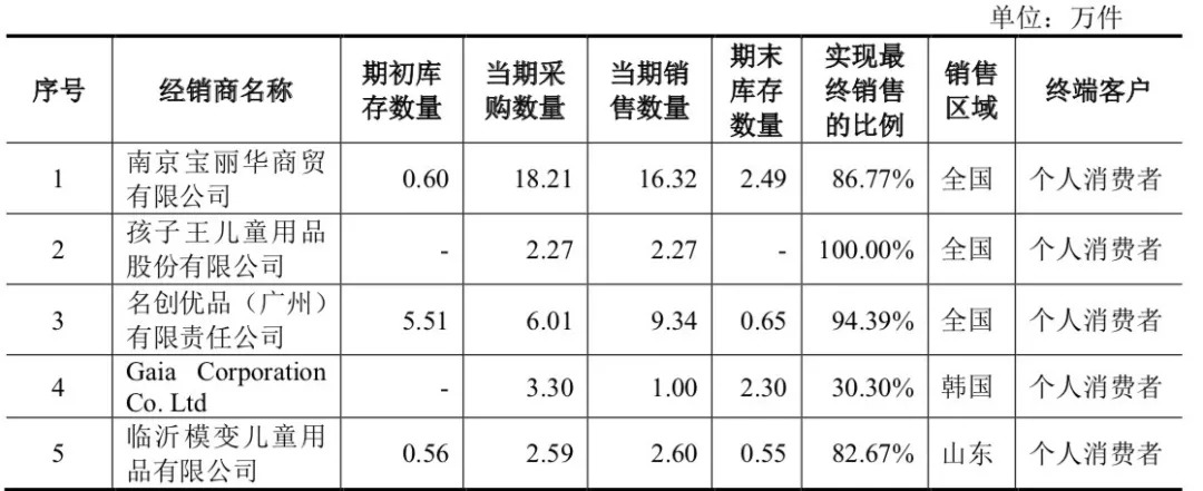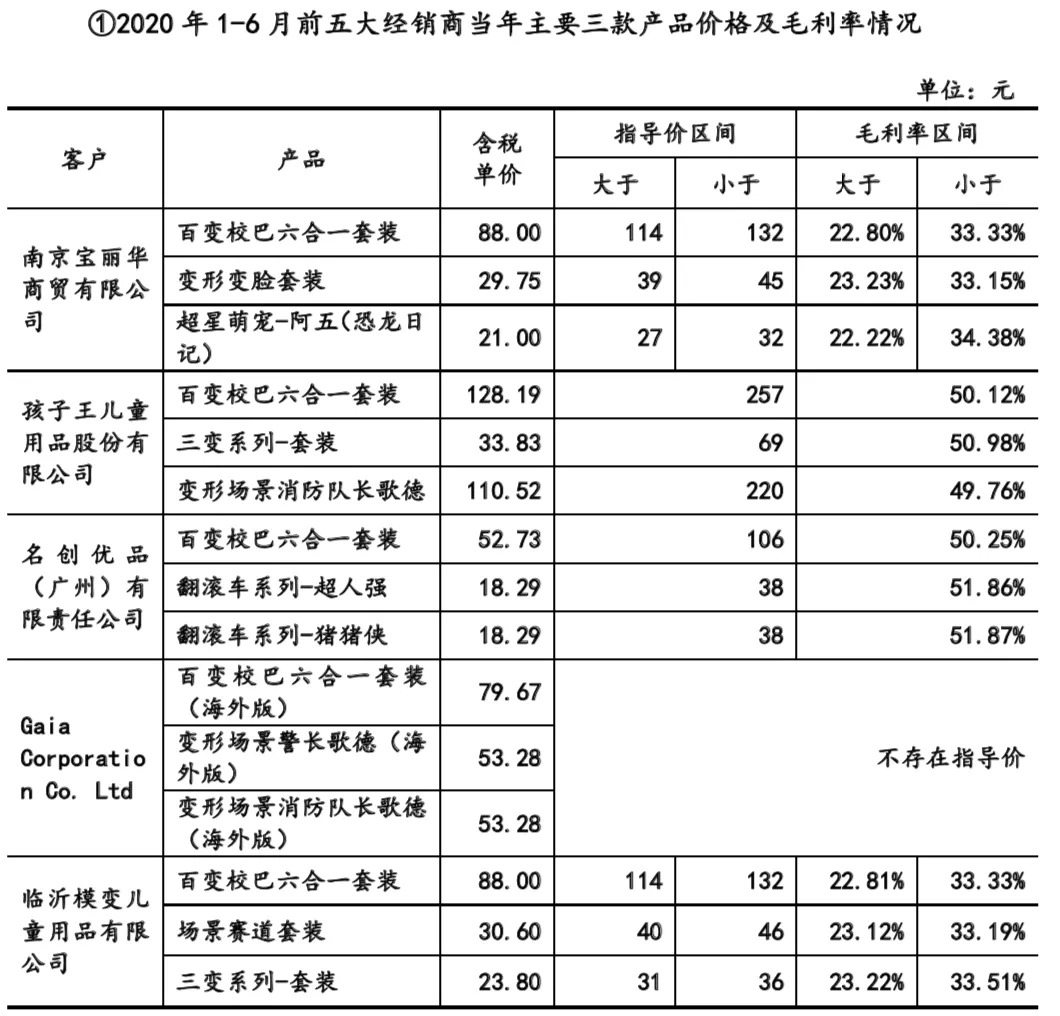 动漫玩具及其他产品业务向Top5经销商的销售情况(部分)