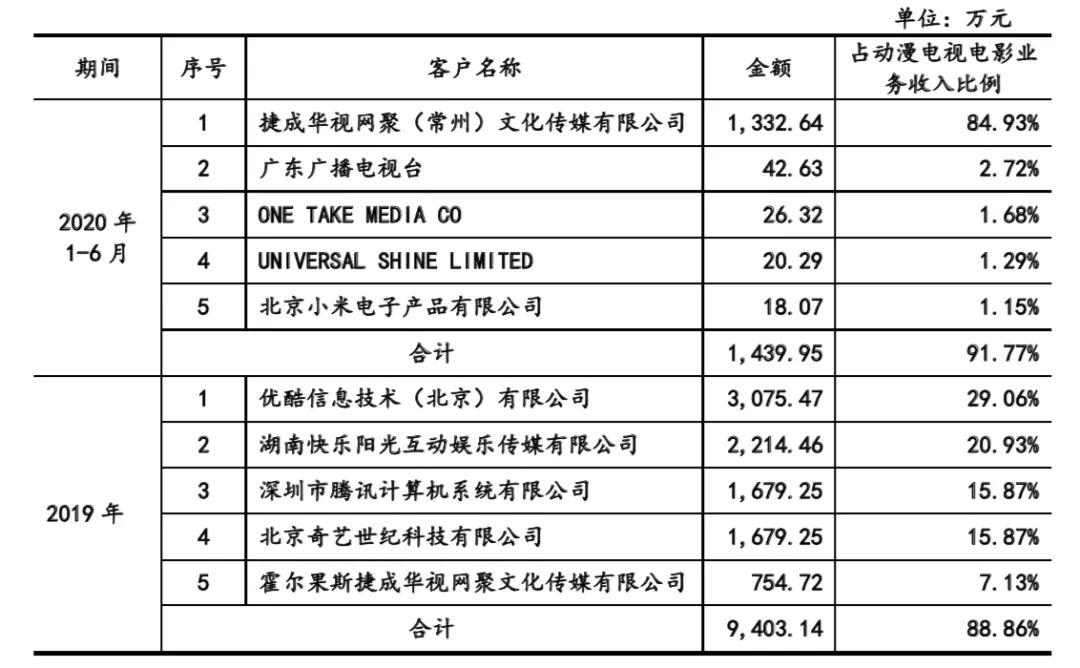 同期,对应年度新发行的电视动画当年收入分别为4476.01万元、9969.72万元、9030.76万元,及1370.29万元,占当年电视动画业务收入的比例分别为89.81%、84.26%、88.19%和88.16%。