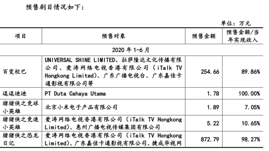 《猪猪侠之深海小英雄3-4》已与主要新媒体客户确定价格,合同正在走流程,预计今年第四季度发行;《猪猪侠之南海日记1-2》已与潜在沟通,预计2020年第四季度发行;《百变校巴之超学先锋1-2》已与合作方确定价格,合同正在走流程,预计2020年第四季度发行。