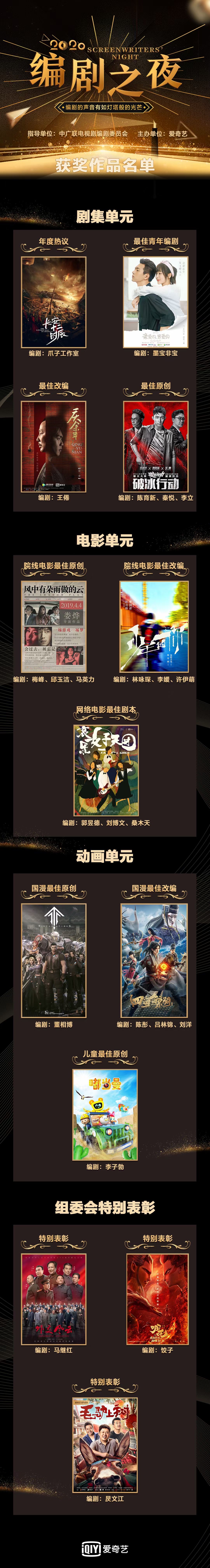 “2020编剧之夜”荣誉作品名单如下: