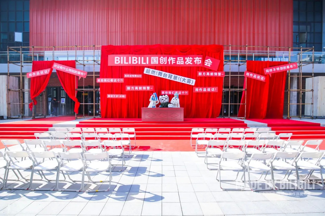 2018年12月,B站在上海U+时尚艺术中心挂上了一块摇摇欲坠的红幕,上面写着“BILIBILI国创作品发布会”几个大字,故意弄出了寒风瑟瑟一派萧索的气息。正当所有人都有些踟蹰之时,它幕布一掀,华丽转身,一口气公布24部国创作品。当时这波反差操作让人哭笑不得,但是记忆深刻。
