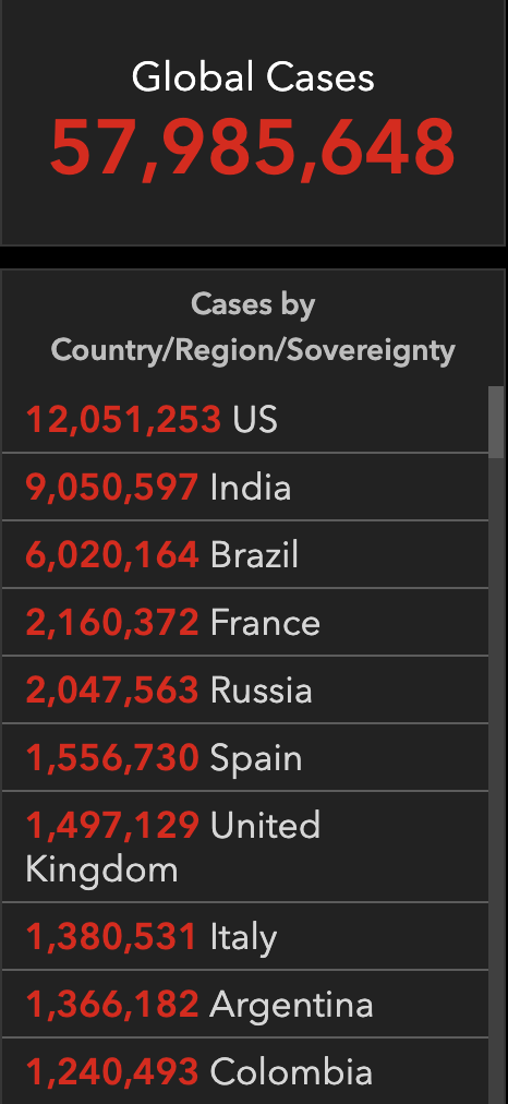 0800【全球累计新冠确诊病例接近5800万】