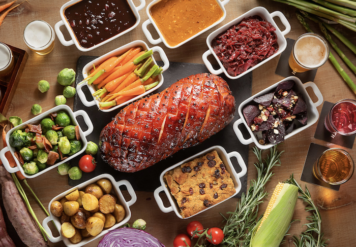 近日,新国贸饭店鲜啤吧推出5至6公斤整只烤火鸡大餐及配菜、2公斤烤火腿和4公斤烤火腿,外加美味菜品和专为节日季新鲜酿造的精酿啤酒。除整只烤火鸡外,鲜啤吧还特别推出火鸡拼盘,为人们带来多种选择。