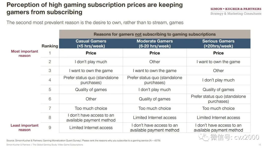 不过,游戏订阅服务的限制同样明显,那就是挑游戏。Simon-Kucher&Partners发布的报告认为,游戏订阅服务吸引玩家的最重要因素是游戏质量。