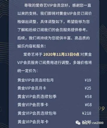 国内视频网站就是最好的例子。爱奇艺与腾讯视频围绕着内容版权进入烧钱模式,入不敷出下却又不敢大幅提升会员费,不得不想出了“超前点播”的法子,结果是舆论走向负面,甚至引来官司,最后还不如直接提价来的好。于是乎,爱奇艺在11月13日正式调整了会员服务价格,调整后的价位从19元到248元不等。