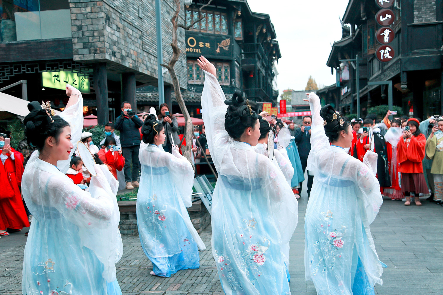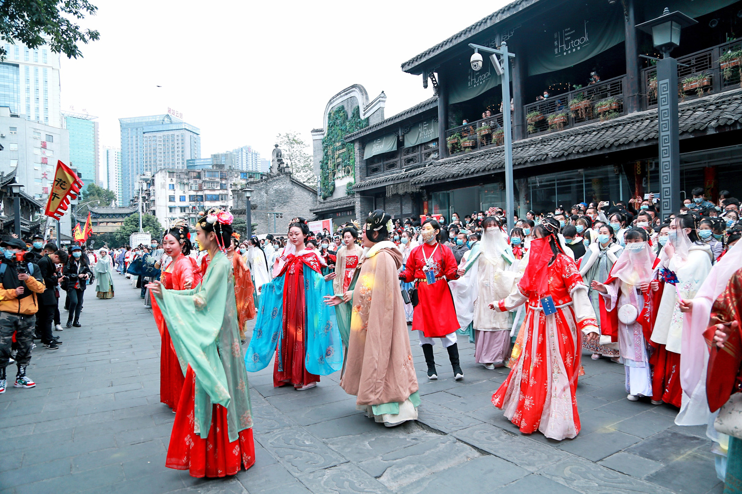 11月22日下午,2020“天府相邀 美丽之约”汉服文化节正式拉开序幕。整个活动主要包括三个板块:“天府相邀 美丽之约”文殊坊汉服大巡游、“锦城十里 汉服大赏”年终特别版VIP 大秀、“服章之美 百商联动”汉服主题体验。“锦城之北,盛装出行,千年之后,再现衣冠上国”。传递出汉服传统回归、汉服进入现实社会的新趋势,成为中国“传统文化复兴”的现象之一,体现了民众的文化自觉;展示身为华夏儿女的美好风貌,致敬“大运会”, 向大家展现成都作为“汉服第一城”的骄傲。 围绕“汉学、蜀风、服美、文殊”主题,文殊坊众多文创商家和机构积极参与活动,精彩纷呈的活动为游客带来的全新的精神体验。