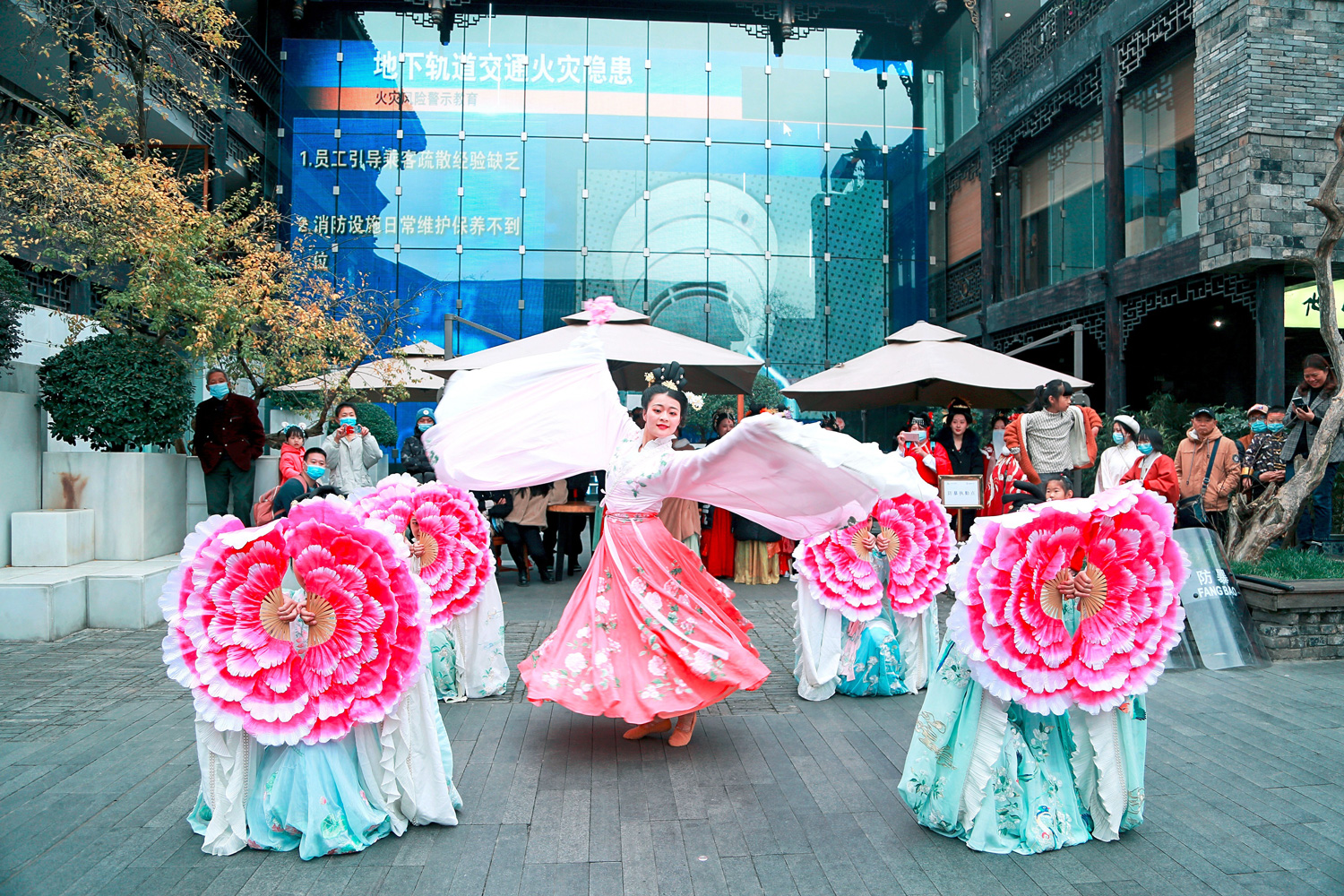 2020“文化天府 时尚成都”主题论坛暨汉服文化节在成都文殊坊盛大举行,正式发布文殊坊特色项目之一“汉服特色街”的规划,着力打造“天府锦城”。