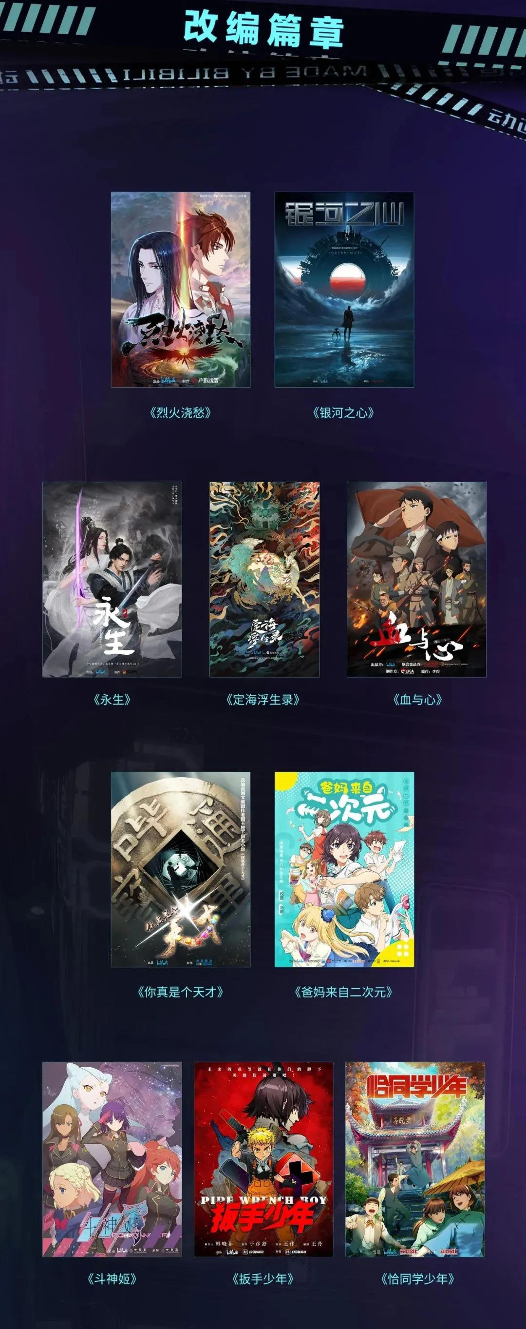 B站还发布了12个改编动画剧集: