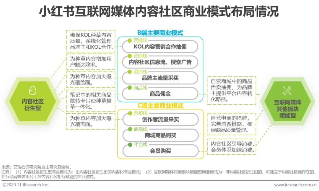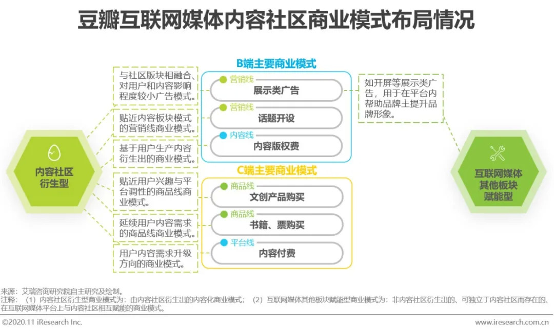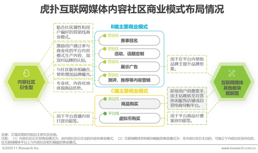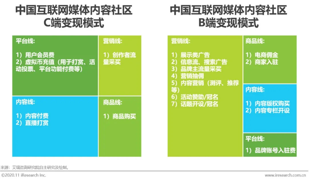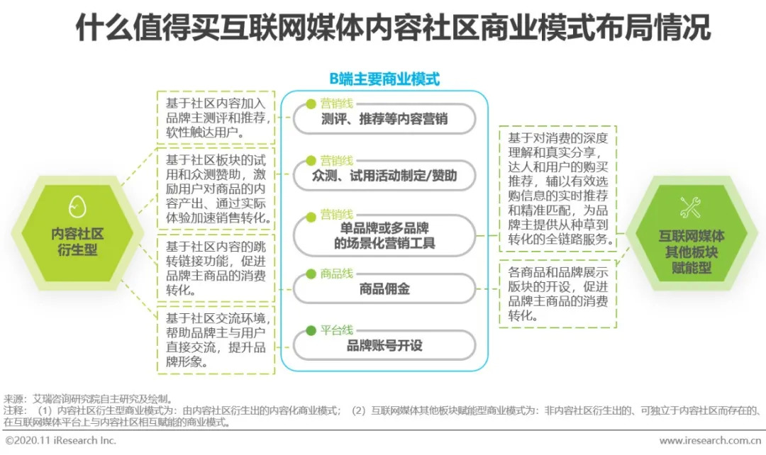 互联网媒体内容社区由B、C两端朝着营销线、商品线、平台线和内容线衍生出的多元商业模式,则提升着媒体平台的变现能力和商业模式衍生空间。