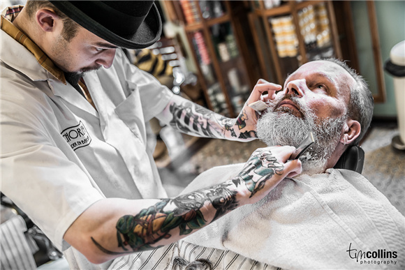 理发和刮胡子的工具和手法,也必须是经典而传统的: