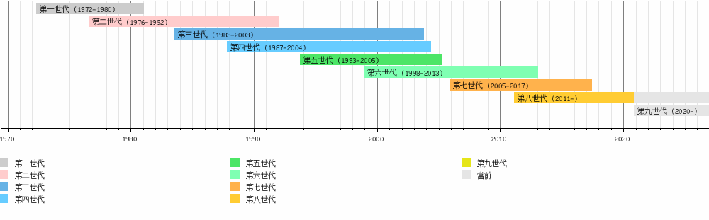 1976年,飞兆半导体(Fairchild Semiconductor)公司推出Fairchild Channel F,第一次使用可更换的游戏卡带。1980年,任天堂(Nintendo)凭借掌机Game & Watch在第二个游戏机世代中脱颖而出,开始在游戏产业崭露头角。在1983年的游戏机第三世代里,任天堂推出了划时代的FC红白机,这款超级机型不仅在日本大获成功,也在海外一举逆转了整个产业的颓势,终结了长达一年的美国游戏业大萧条(Video Game Crash),让任天堂取代了昔日的龙头雅达利,成为了称霸至今的游戏业巨头。
