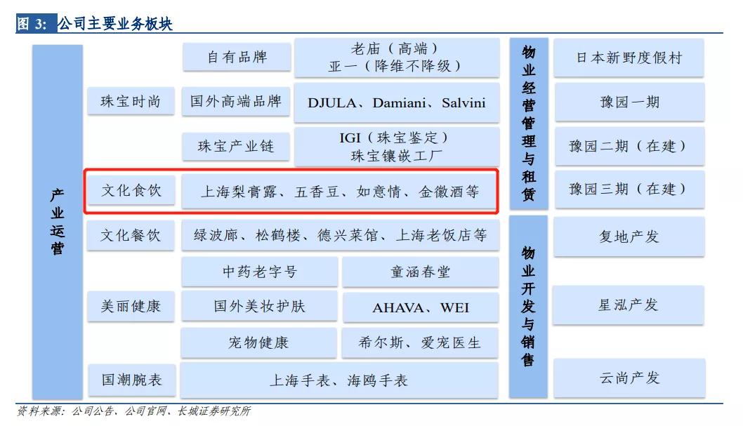 在金徽酒加入后,豫园股份的“快乐时尚”版图中,已拥有17个“中华老字号”。其中包括“上海”、“海鸥”手表,“老庙”黄金珠宝,“上海老饭店”、“松鹤楼”等餐饮品牌,覆盖了珠宝时尚、文化商业、文化餐饮、文化食品、美丽健康、智慧零售、复合功能地产等诸多业务板块。