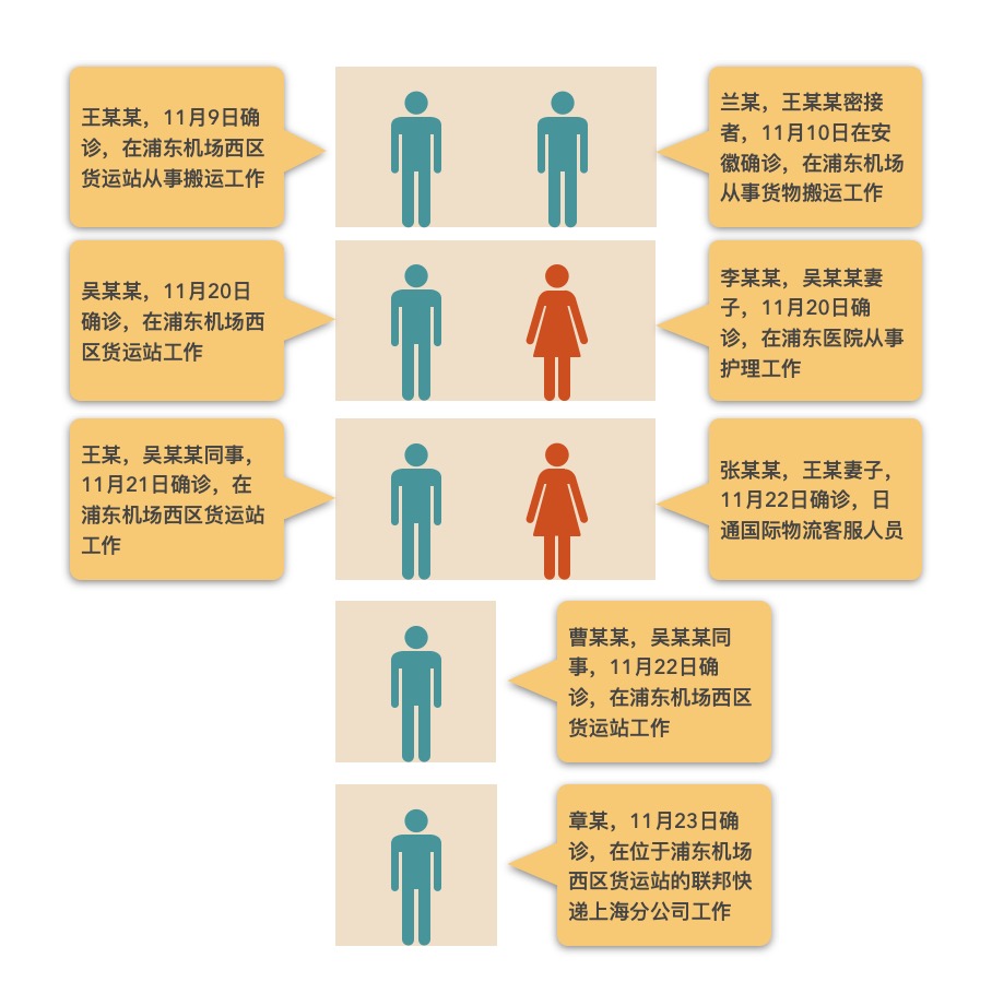 章某,男,36岁,系位于浦东机场西区货运站的联邦快递(中国)有限公司上海分公司工作人员。今天下午,经市、区疾控中心新冠病毒核酸检测,结果为阳性。经市级专家会诊,结合临床、影像学表现和实验室核酸检测结果,被诊断为新冠肺炎确诊病例。