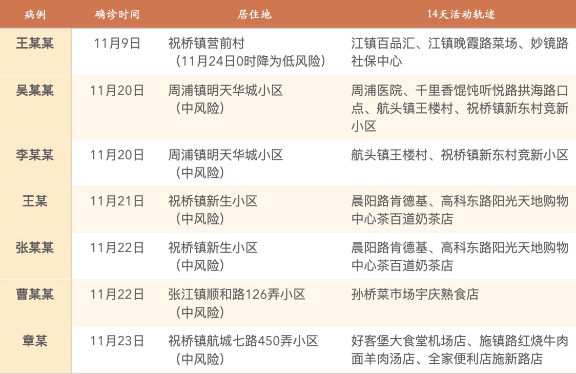 经对章某14天内活动轨迹的流行病学调查显示,曾去过祝桥镇航城七路450弄小区、好客堡大食堂机场店、施镇路红烧牛肉面羊肉汤店、全家便利店施新路店等场所。上述相关场所均已落实终末消毒。