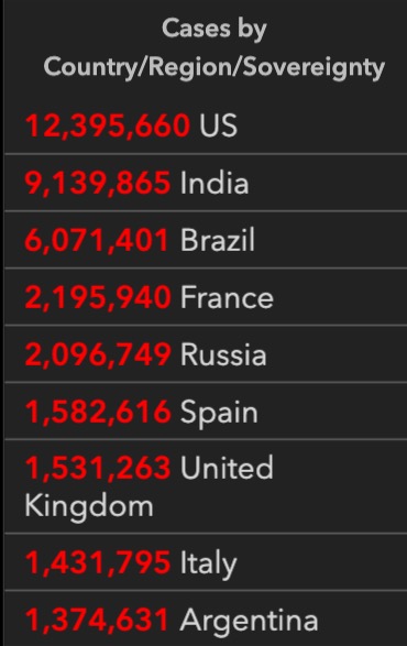 0800【美国新冠肺炎确诊病例累计超1237万例】