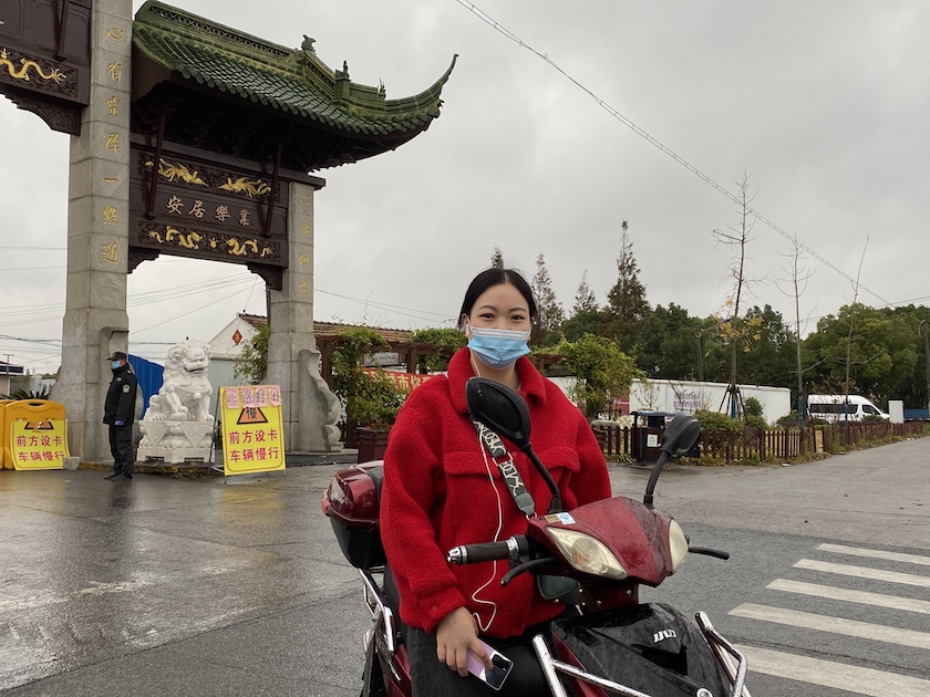隔离14天之后,营前村村民张晓彦可以去上班了,她特意穿了一件红色衣服。