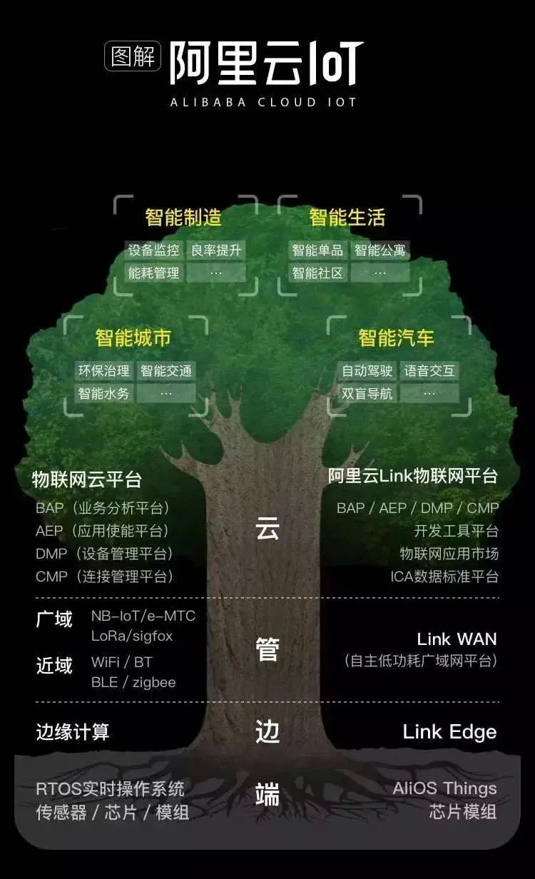 因为相信物联网是互联网的补充,是事物与云端之间的联系纽带,所以阿里的自身定位是“物联网基础设施提供商”,通过构建智能物联网平台,部署IoT支持平台、IoT操作系统,以及IoT边缘计算建立完善的基础设施来改善生态系统,最终推动互联网成为智能互联网。