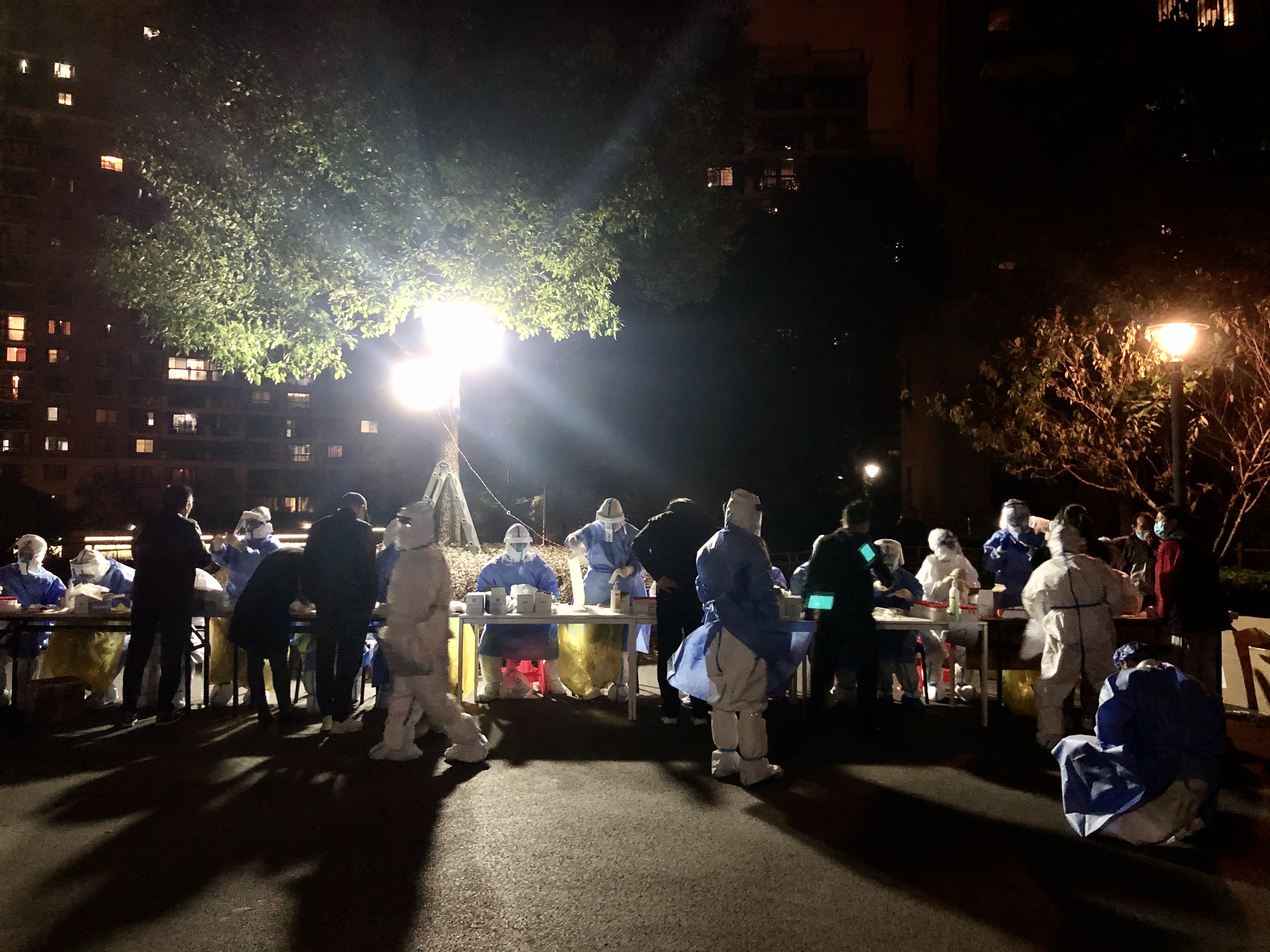 “整个组织过程反应很快。”罗钰告诉界面新闻。听到小区有人确诊的消息后,晚上9点左右她曾跟母亲下楼查看具体情况,那时已经有大巴车载着医护人员进入小区,在布置核酸检测的场地。