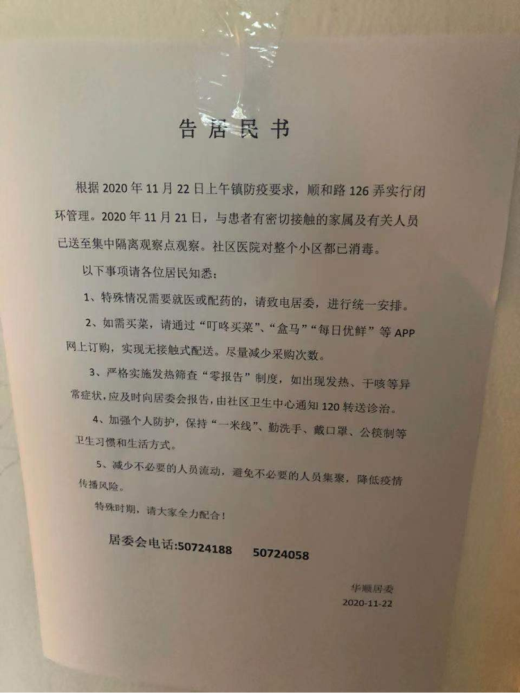 11月22日,上海再次通报,新增两例本地病例,其中一病例在沪居住地为张江镇顺和路126弄小区。