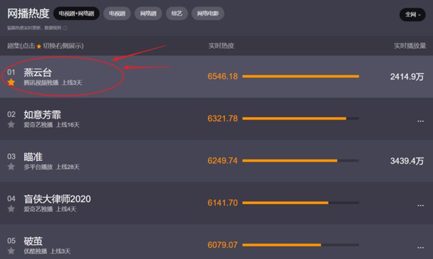 然而,一部剧被疯狂嘲讽未必没有好处,我们时常将“黑红”概念灌输在流量明星身上,这种逻辑若要用到一部剧上也恰为合适。《燕云台》、《鹿鼎记》尽管口碑评分日渐惨淡,网友口诛笔伐,可热度却迟迟居高不下。或许,对于很多主创来讲,众嘲狂潮总好过平静如水。