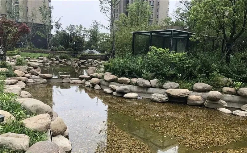 细节方面,小区的绿化相对不错,还有水景,休息区域也有。