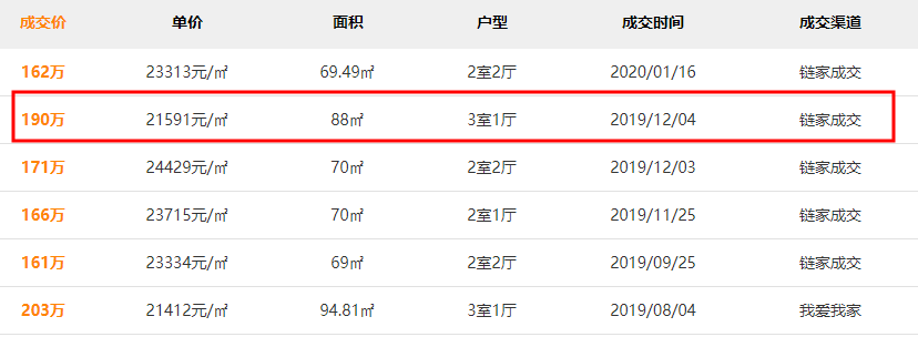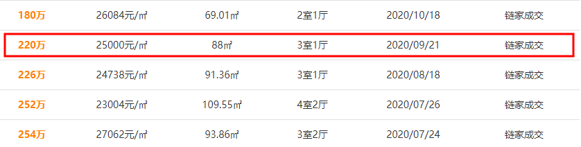 如果再细心一点,相信大家可以发现,小区自2019年10月11日成交一套总价205万的房源后,直到2020年6月21日才又有成交,期间长达8个月,没有显示成交,且成交单价没有太大明显的涨幅。