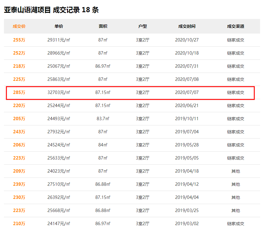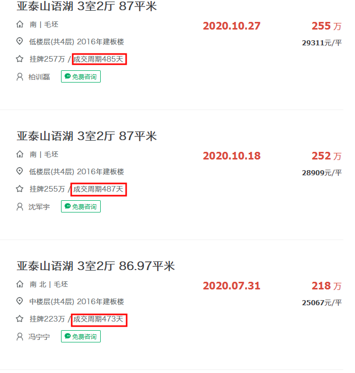 此外,以链家上亚泰山语湖的3笔成交来看,亚泰山语湖的成交周期较长,成交周期在470天以上。