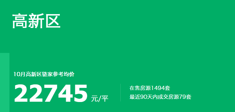 从链家的数据可以看出,高新区10月二手房挂牌均价22745元/㎡,在售房源也不少,高达1494套。