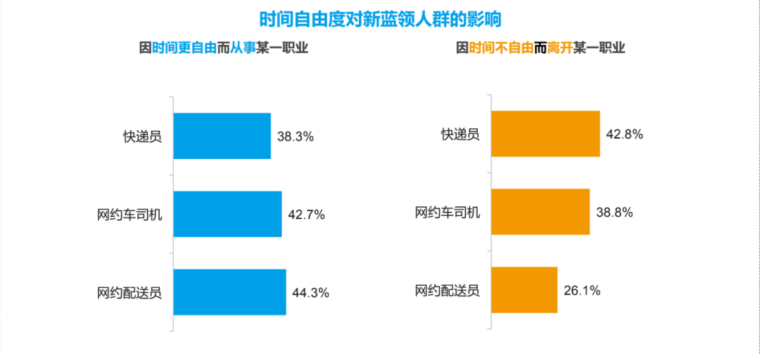 对于固定在生产线或其它工作岗位,动辄连续工作十多小时的传统蓝领来讲,时间自由原本是最不可能实现的,但新蓝领的出现则改变了这种现状,这也是为什么不少传统蓝领流入新蓝领群体的原因。而在快递员、网约车司机、网约配送员中,网约配送员的自由度最高。